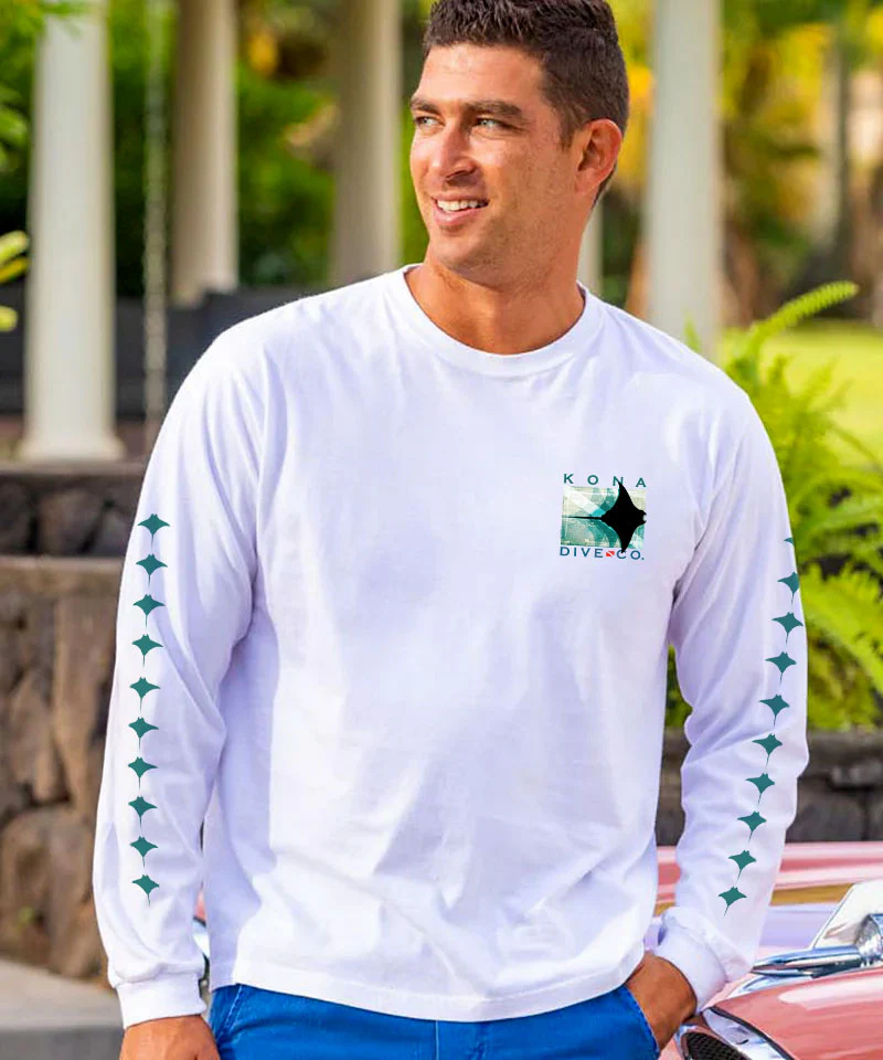 Kona Dive Company Blur - White Long Sleeve Crewneck T-Shirt—