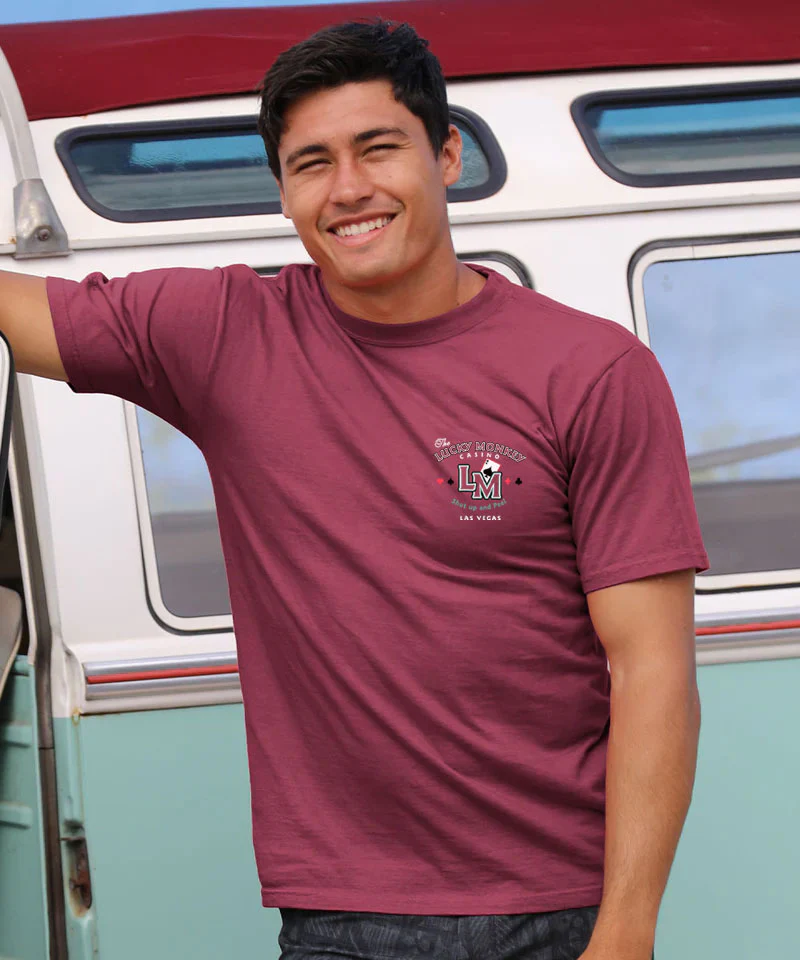 Hit the jackpot of humor with The Lucky Monkey Casino tee - where every hand is full of fun and the only gamble is how many laughs you'll get. Guaranteed fun… or your monkey back! Made using our exclusive Paradise Red specialty dying process and featuring 100% combed ring-spun cotton, this t-shirt has 50+ SPF protection to keep you feeling cool, calm and protected all year long. We only use environmentally friendly water-based inks that penetrate the material's fiber resulting in more vibrant colors, softer feel and artwork that doesn't crack or peel. Plus, it is proudly printed in the United States for quality you can see and designs that stand the test of time.