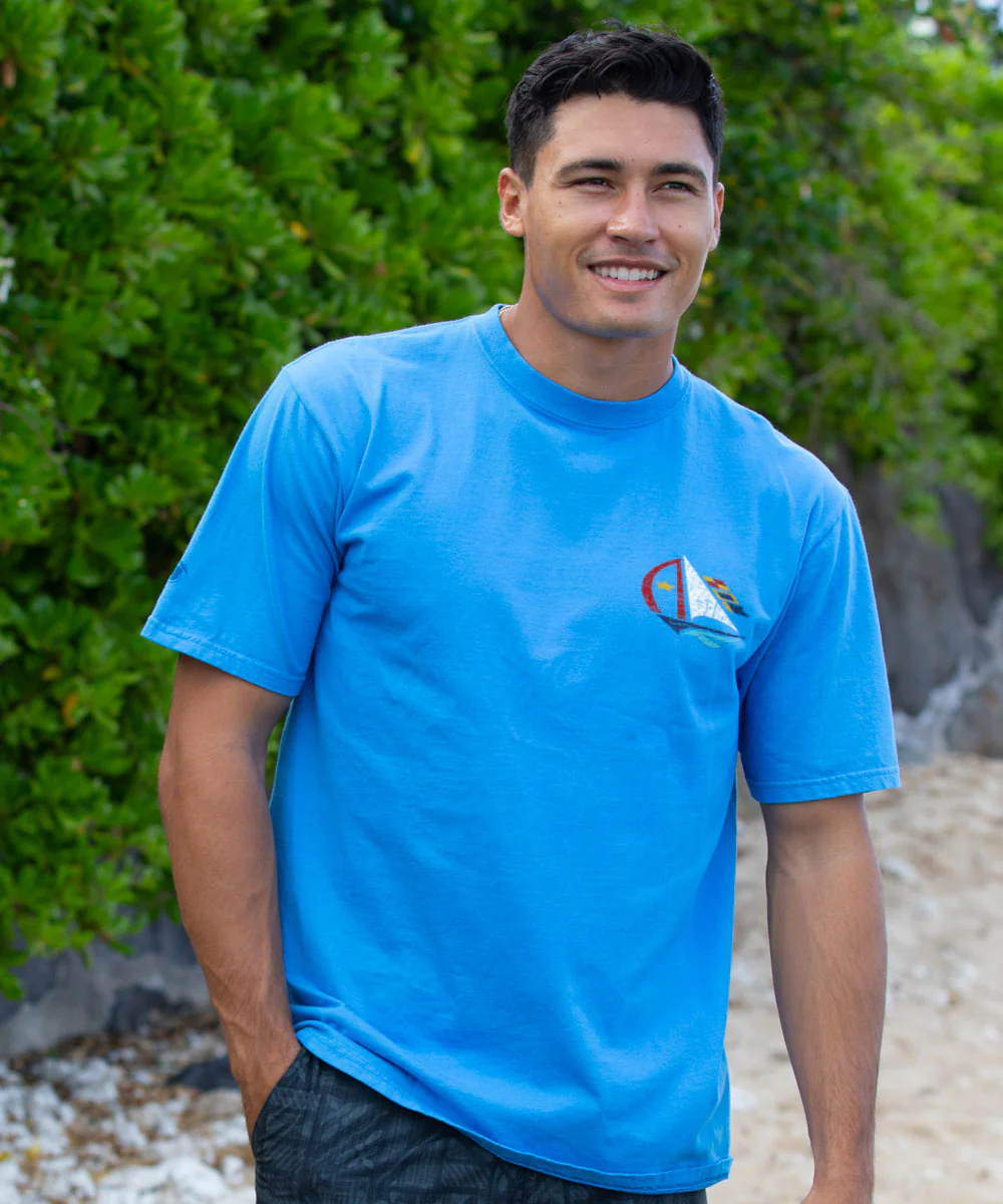 Clean lines, crisp sails, and coastal breeze in every detail - this bold graphic channels the nautical charm of Sausalito, where sailboats glide past painted hills and every day feels like a regatta. Made using our exclusive Blue Hawaii specialty dying process and featuring 100% combed ring-spun cotton, this t-shirt has 50+ SPF protection to keep you feeling cool, calm and protected all year long. We only use environmentally friendly water-based inks that penetrate the material's fiber resulting in more vibrant colors, softer feel and artwork that doesn't crack or peel. Plus, it is proudly printed in the United States for quality you can see and designs that stand the test of time.